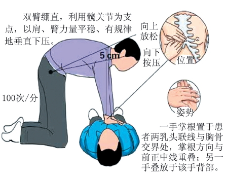 ? ? ? ?該類人員應該采用人工胸外心臟按壓法來恢復病人的心跳。一般可以按下述口訣進行,頻率是每分鐘為60~80次。